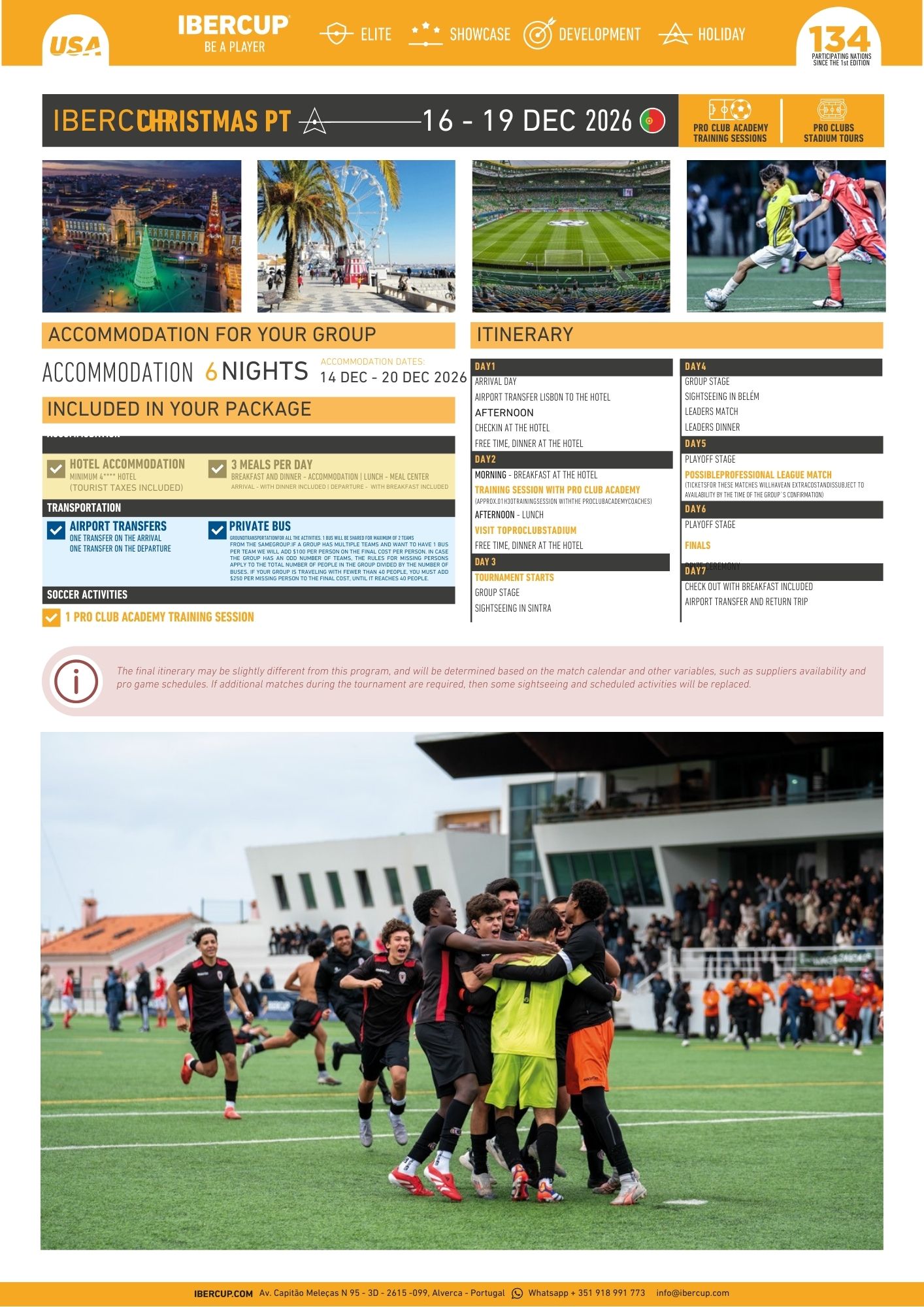 We are excited to officially announce that Force Soccer Club will be traveling to Portugal to compete in the prestigious IberCup Christmas 2026 (December 16 – 19, 2026). This is more than just an international tournament; this is a USL-level program designed for players committed to a professional-track developmental environment. As we continue to align our standards with the highest levels of American soccer, this trip serves as a centerpiece for our elite player pathway.