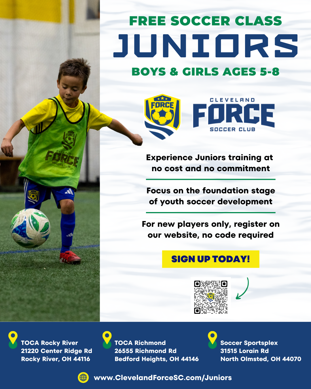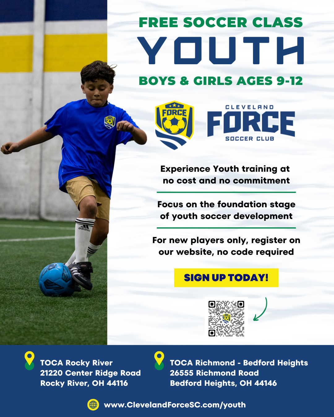 Once you are registered for Pre-Club Academy Kick-off, a Cleveland Force staff member will be in touch set a date for your free class!