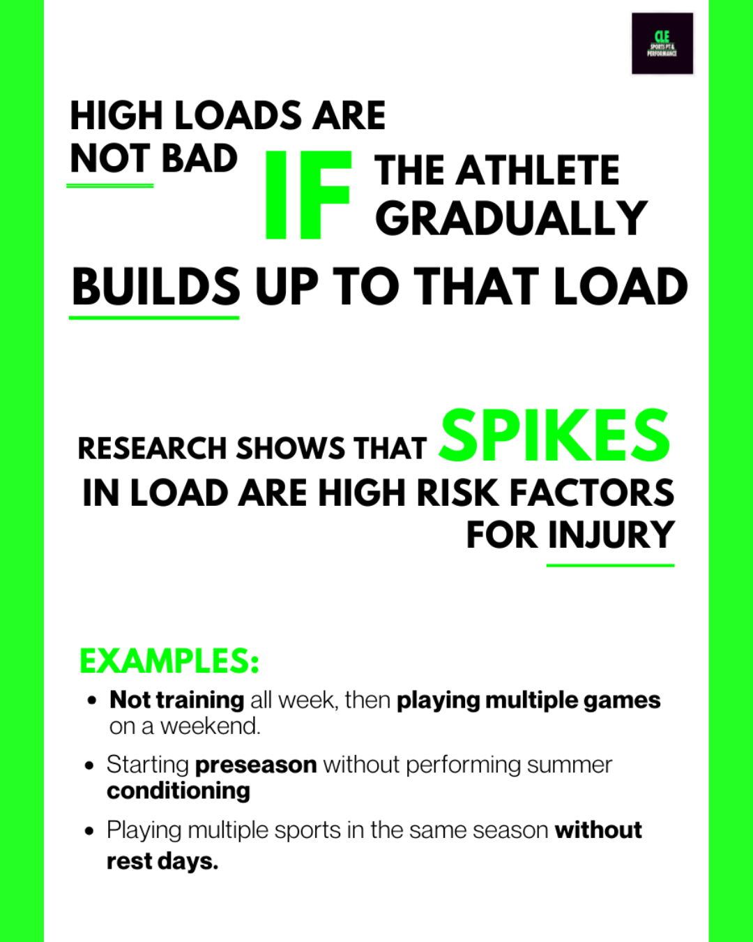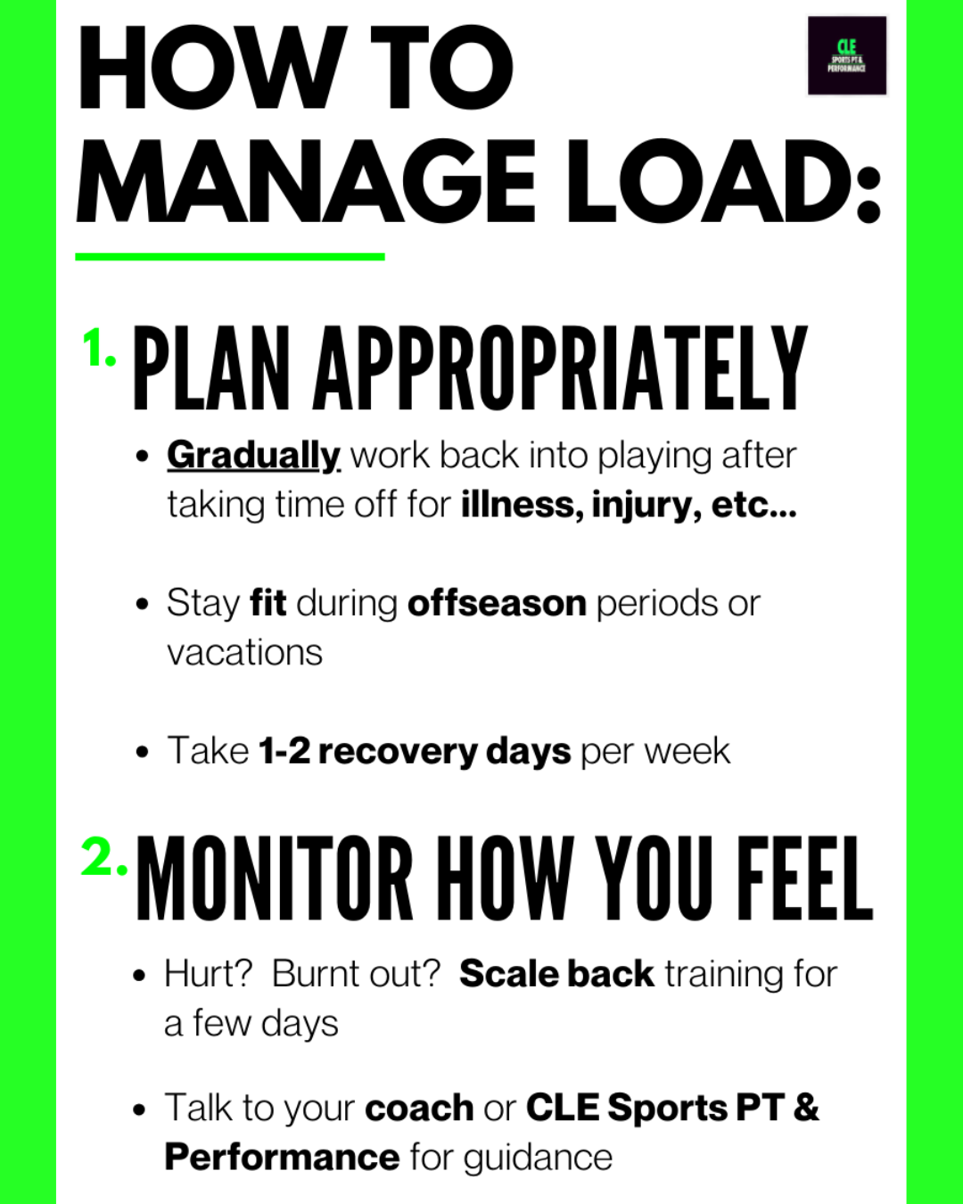 CLE Sports PT & Performance explains how to identify and control load management. To learn more, join Director Carol Mack on September 25th at 7pm on Zoom. Check your PlayMetrics account for the link and passcode for the presentation!
