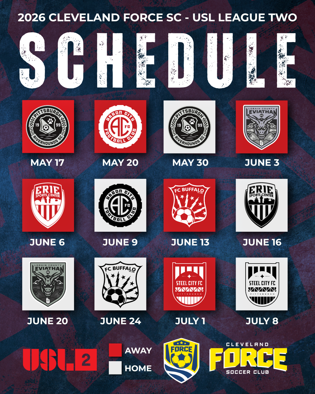 Schedules for the 2026 USL Season are now out! Put these dates on your calendar and stay tuned for home game ticket information as well as special season details coming soon! Make sure to follow @ClevForceUSL on social media to stay updated all season long!