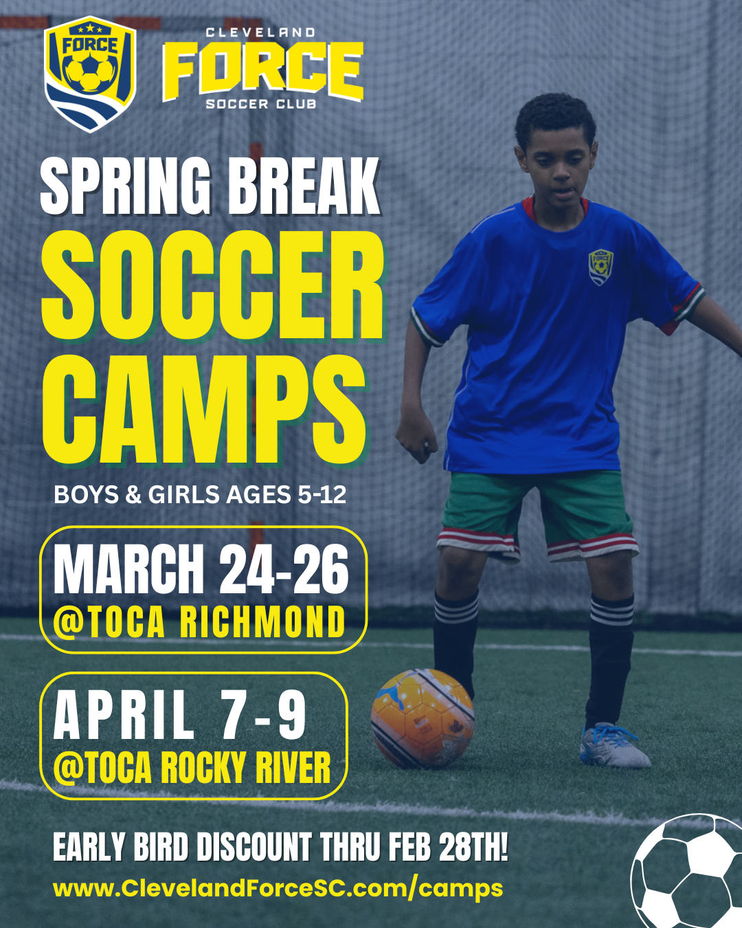 Join Cleveland Force SC Spring Break Camps for high-energy sessions focused on skill development and small-sided game play. More touches. Faster decisions. Better players.