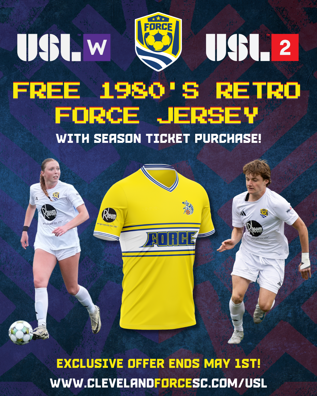 Get ready for an incredible summer of soccer as Cleveland Force SC returns to the field in the 2026 USL League Two season! Season Ticket Passes are available NOW and include an exclusive 1980’s Retro Cleveland Force Jersey — a throwback to one of the most iconic eras of soccer in Cleveland. Catch every home match, support the next generation of top amateur players, and rep the Force in vintage style all season long.